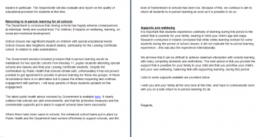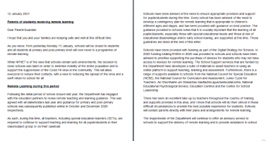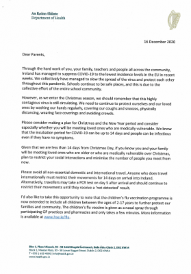 Letter from Minister Norma Foley TD to parents - Jan 12th
